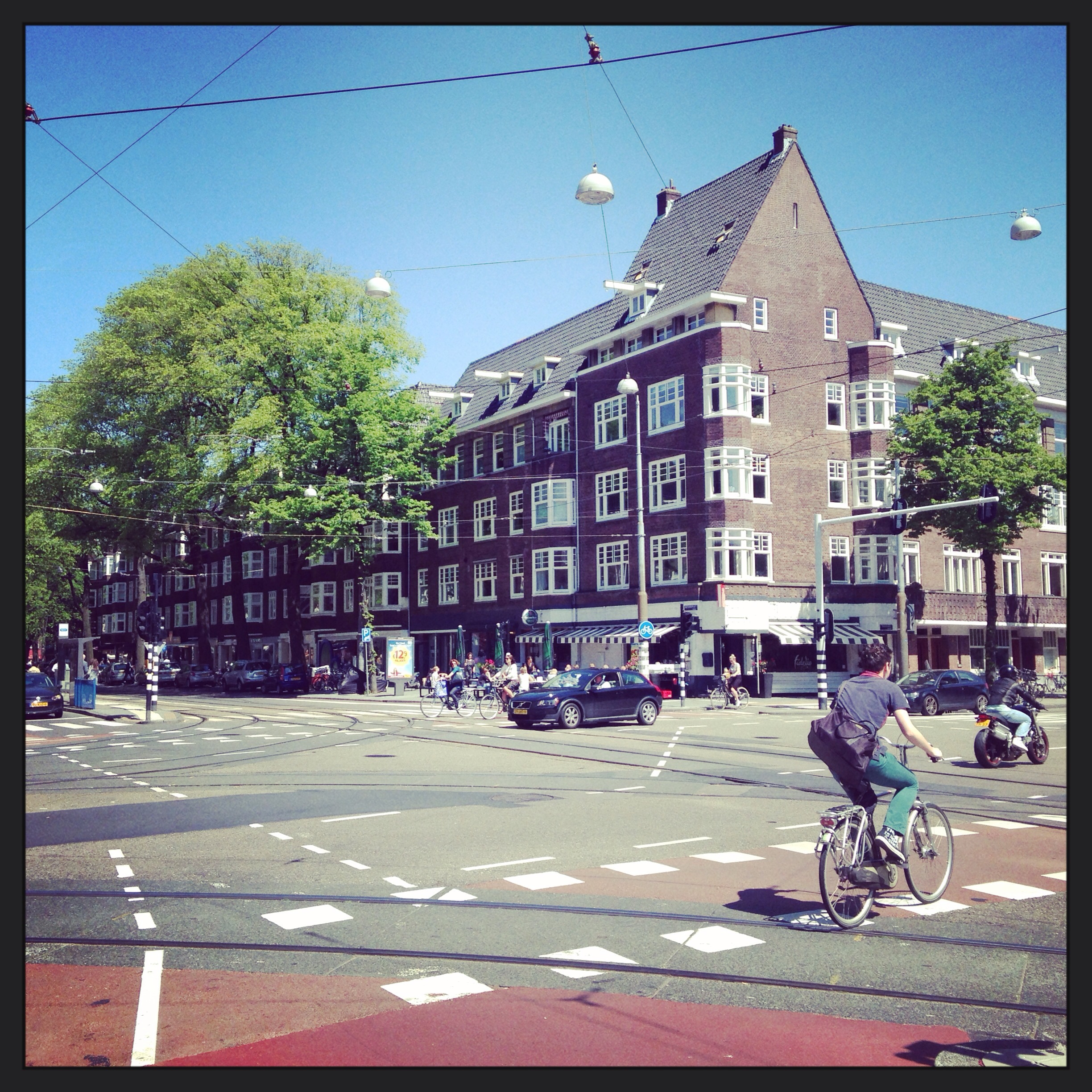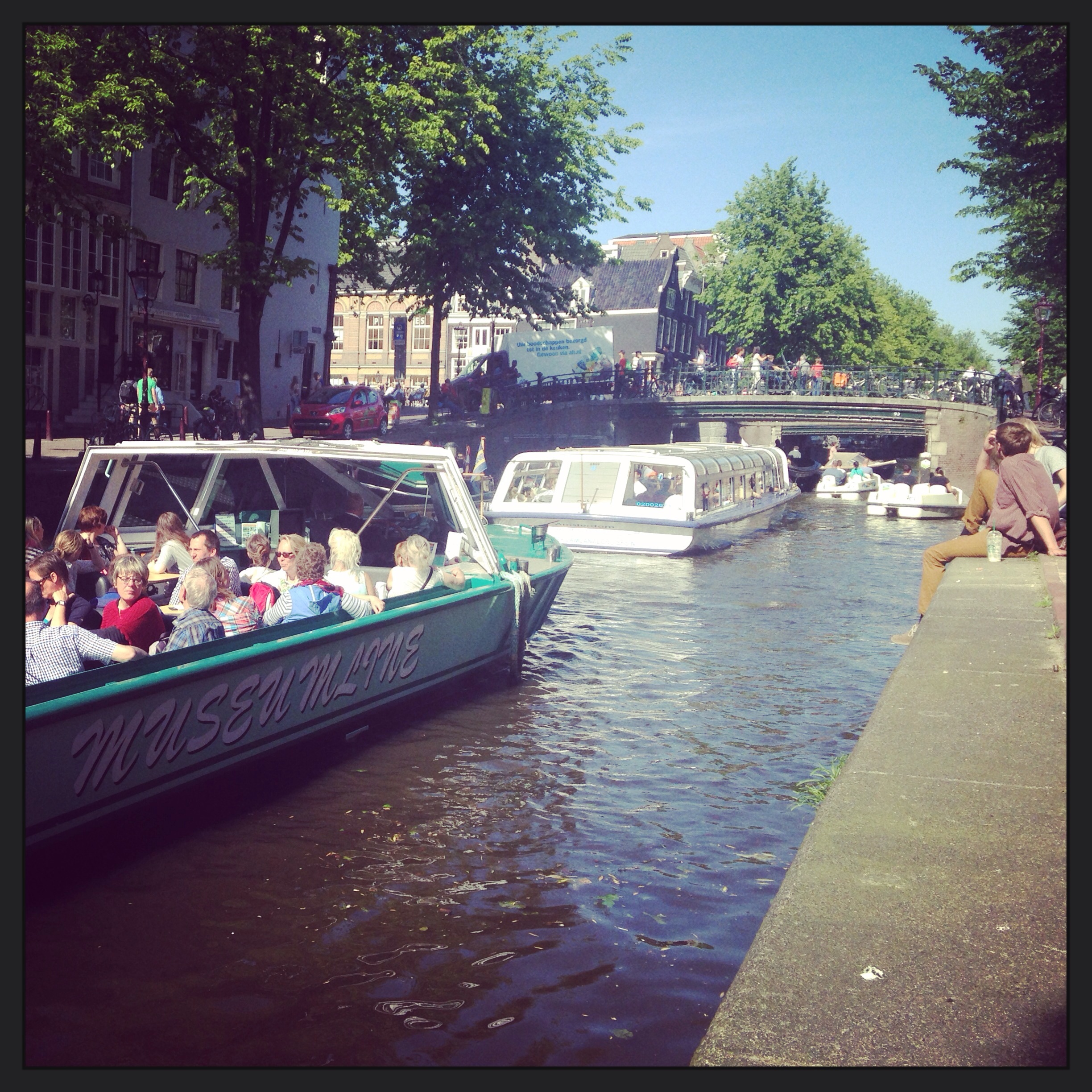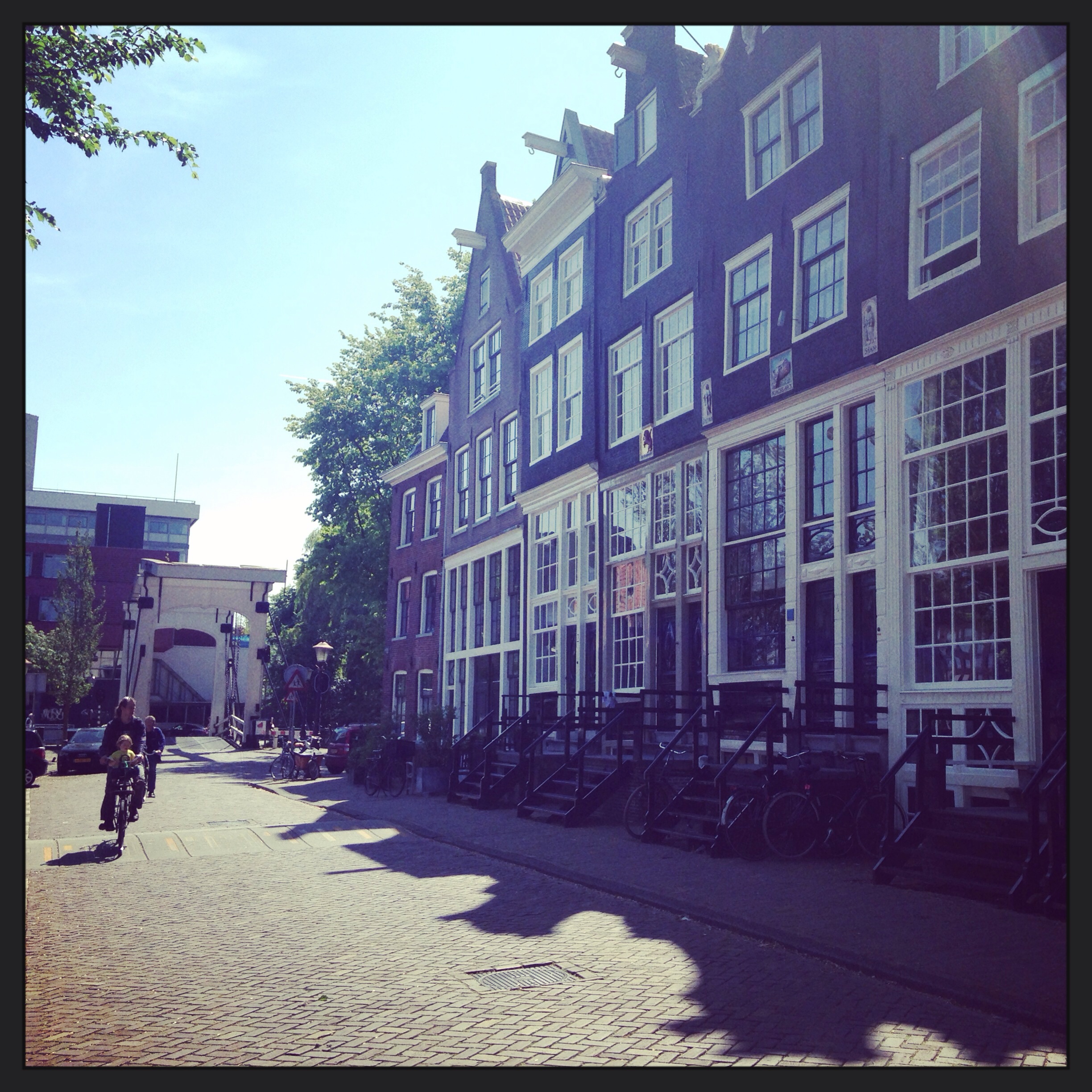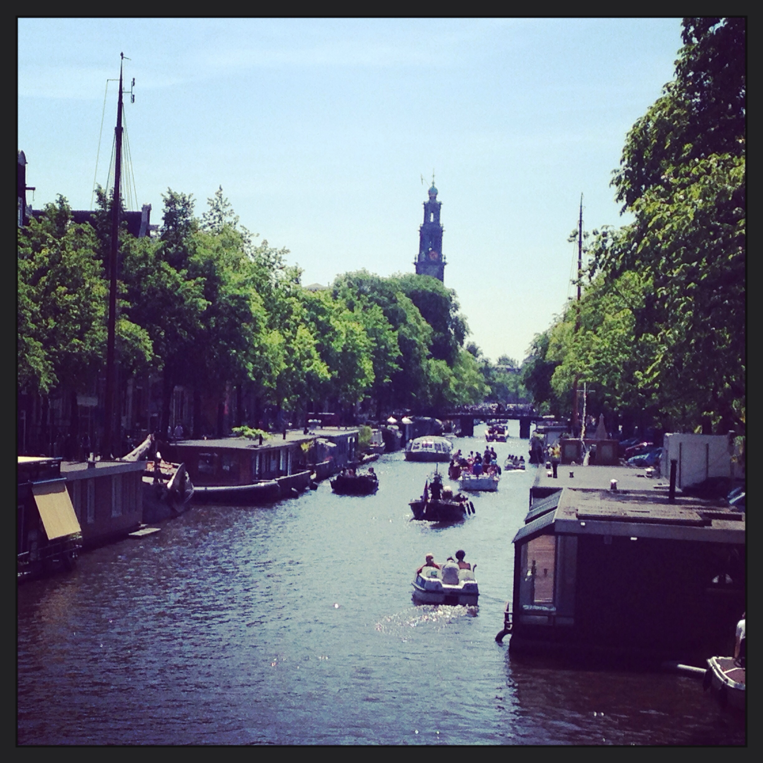 Gestern war noch einmal ein toller Tag! Ohne Ziel und Plan habe ich mich auf’s Rad geschwungen und die Stadt erkundet. Quasi immer der Nase lang. Was ich dabei Schoenes entdeckt habe, seht Ihr unten. Es war herrlich, sich bei tollstem Wetter einfach treiben zu lassen. Ab und an musste ich mein iPhone zuecken, um mal abzuchecken, in welchem Teil der Stadt ich nun eigentlich gelandet bin. Besucht habe ich so gut wie alle und nur selten querte ich die klassischen Touristenpfade – keine Lust auf Gedraenge, klickende Kameras und Souvenirs. Am Samstag gleichen bestimmte Bereiche der Grachten uebrigens auch mal einem schwimmenden Oktoberfest – inklusive Schiffsstau. Muss man nicht unbedingt haben.