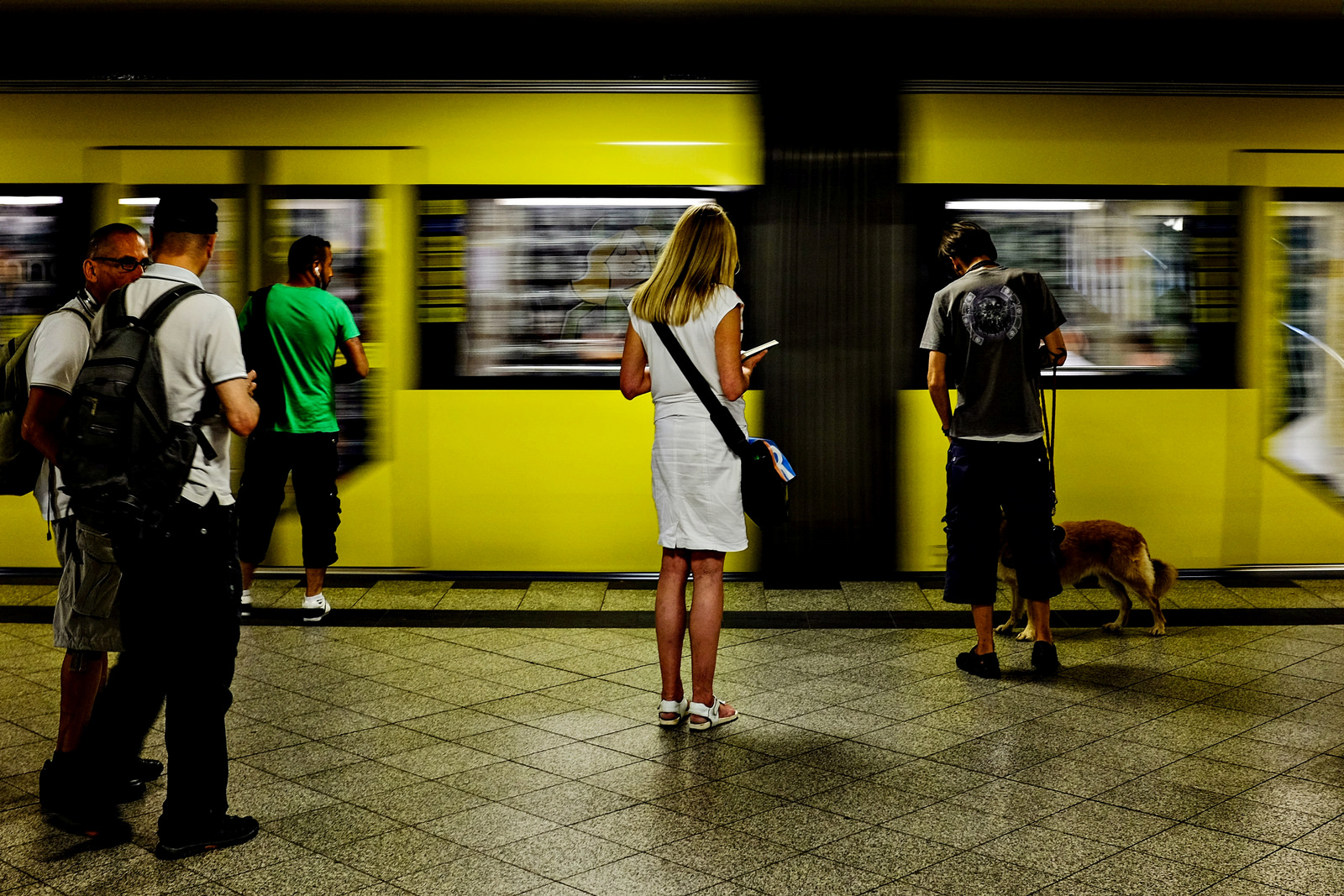 Marktgeschäft, flirrende Mittagshitze, stolze, lachende Herren mit faltigem, sonnengegerbtem Gesicht. Automatisch addiert man die Geräusche und Gerüche hinzu: Süssliches Fleisch in der Mittagshitze, Kräuter und Gewürze. Aufgeregtes, lautes Stimmengewirr, hier und da durchbrochen von Lachen und Geschrei. Quietschende U-Bahn-Räder, klappernde Schuhe auf von Sommersonne erhitztem Granitsteinpflaster, Lautsprecherdurchsagen, die angenehme Kühle des Bahnhofgebäudes und Uringeruch. Vielleicht ist es gerade dieser Kontrast der Bilder, der aufhorchen und aufschreien läßt? „Vorsicht, wir könnten was verpaßen!“