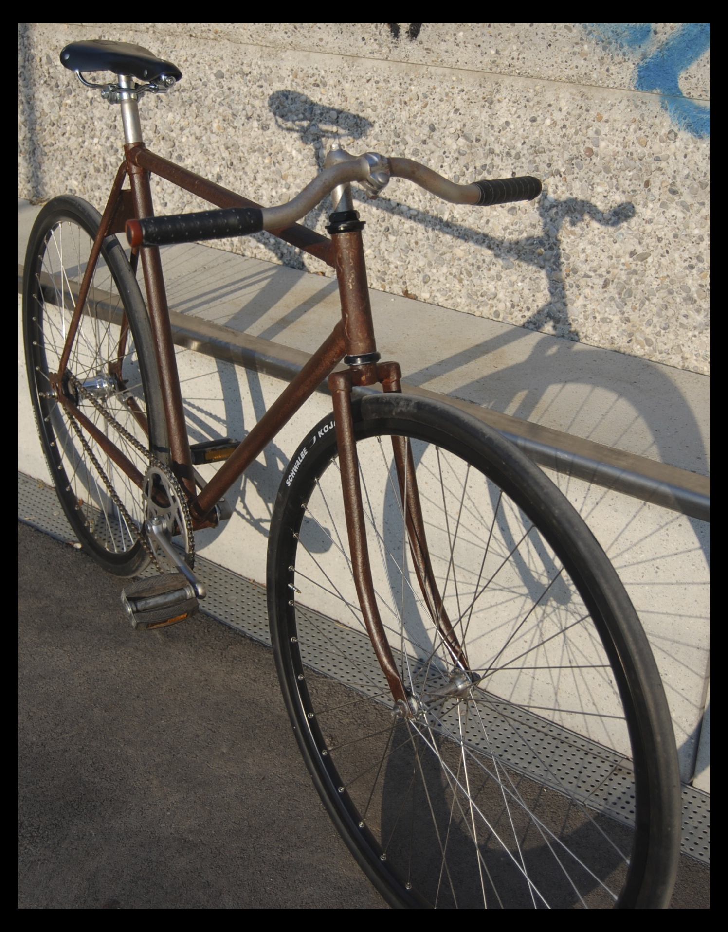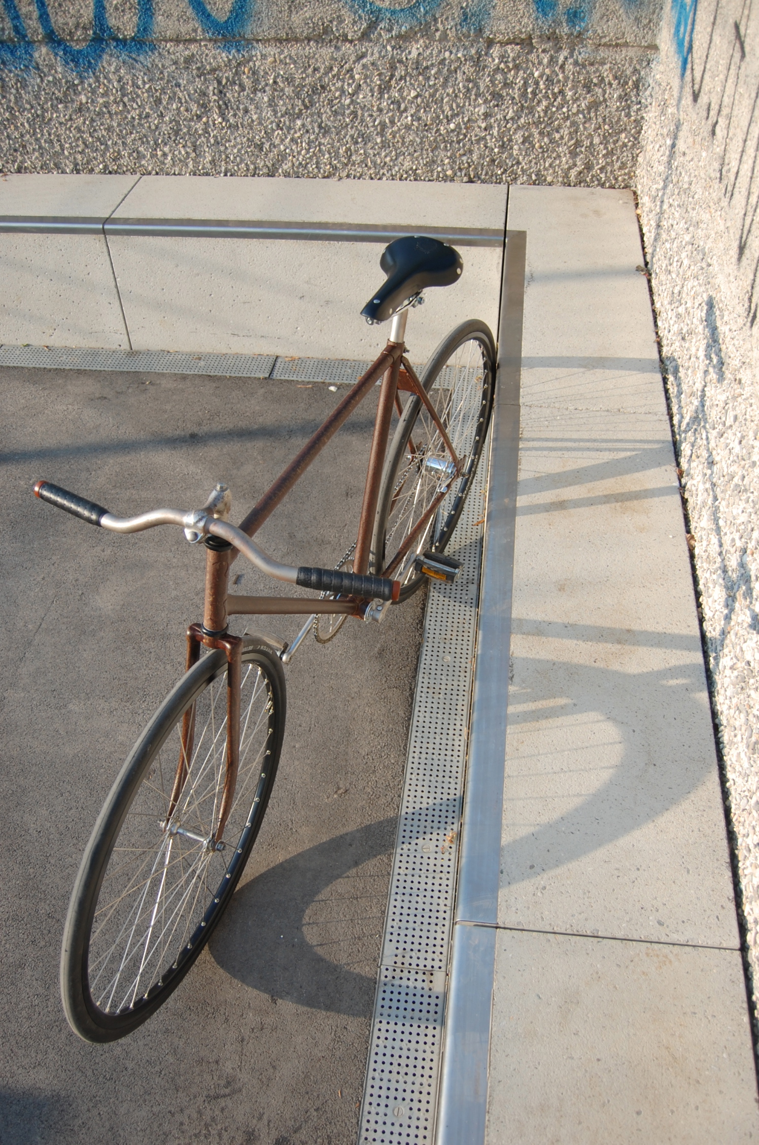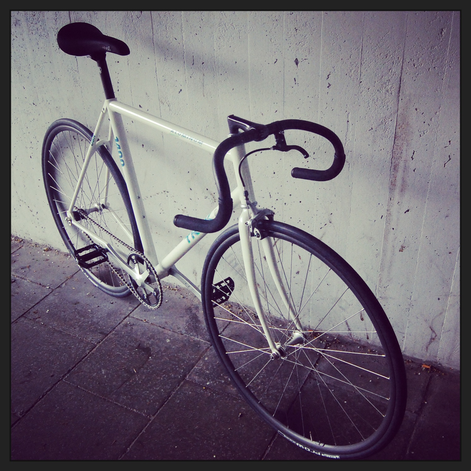 By the way: beim stadt.rad gibt’s endlich wieder Zuwachs! Allerdings nicht in meiner Rahmengröße. Ein old-school-Fixie in schickem perlmutt, der Alu-Rahmen noch mit Original-Lackierung. Ohne Schnörkel und SchnickSchnack. Nun wartet es darauf jemanden zu finden, der es durch das Stadtleben reitet.